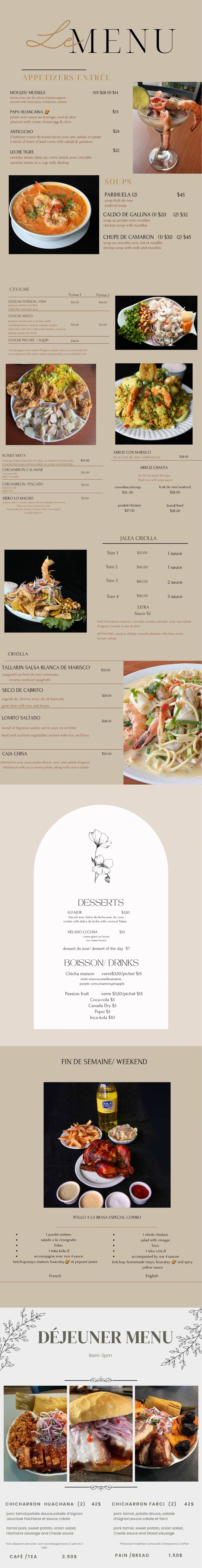 Chicho's Restaurant brings the vibrant flavors of Peru to Montreal. We are proud to share our culture and cuisine with the local community.
